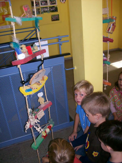 Die 1. Klasse informiert sich bei unseren Himmelsleitern über die Kinderrechte.
