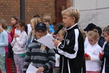 Besucher der Landesgartenschau schauten ebenfalls interessiert zu und hörten sich an, was die Kinder unserer Schule zum Motto des diesjährigen Weltkindertages zu sagen und zu singen hatten.