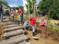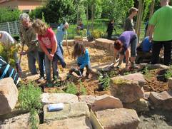 Viele fleißige Helfer trugen dazu bei, dass der Wasserlauf fertig gestellt wurde und Verschönerungsarbeiten vorgenommen werden konnten.