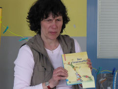 Zum Abschluss der Buchwoche las die bekannte Kinderbuchautorin Uta Kneisel aus ihren Büchern "Tabua" und "Rosita und Storch Adebar" vor. Uta Kneisel entführte die Kinder mit ihren Texten und den Dias ihrer selbst gemalten Illustrationen in ferne Länder und begeisterte die Kinder mit ihren vielfältigen "Mitbringseln" aus fremden Kulturen.