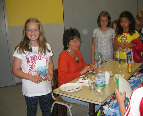 Nach langen Verhandlungen mit den anwesenden Kindern, beschlossen wir, die Bücher allen Kindern unserer Schule als Klassenlektüre zur Verfügung zu stellen. Denn selbstverständlich hätten die Kinder gerne ein signiertes Buch als ihr Eigentum betrachtet.