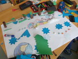 Die Kinder konnten sich in folgenden Werkstätten: Theater spielen, Kunst zum Buch, Bilderbuchkino/I-Pad, PowerPoint, Schattentheater, Bunte Schreibideen, Buchkisten auf unterschiedliche Weise mit ihrem Buch auseinandersetzen.